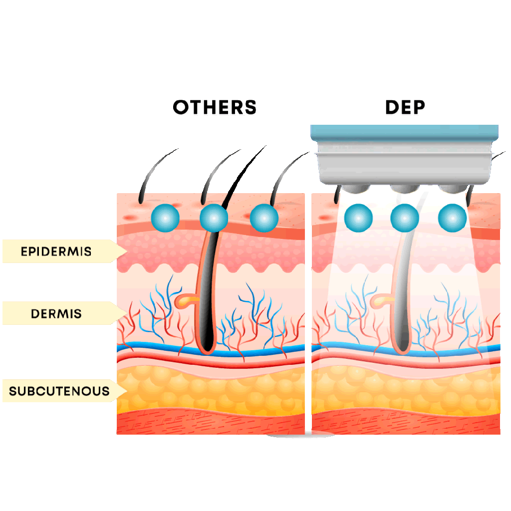 DEP allows molecules regardless of size, to reach into hair follicles for effective hair growth and stimulation!